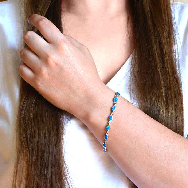 Ta elegancka biżuteria wykonana z wysokiego gatunku srebra pr.925. Modna bransoletka srebrna zdobiona pięknie lśniącymi opalami. To ponadczasowa biżuteria damska dedykowana kobietom w każdym wiek. Model niezwykle szykowny. Ten model bransoletki srebrnej szczególnie polecamy na wyjątkowy prezent, który z pewnością ucieszy i posłuży na długie lata. Dzięki przedłużce o długości 3 cm możemy regulować rozmiar bransoletki srebrnej w zakresie 15,5 - 20 cm.