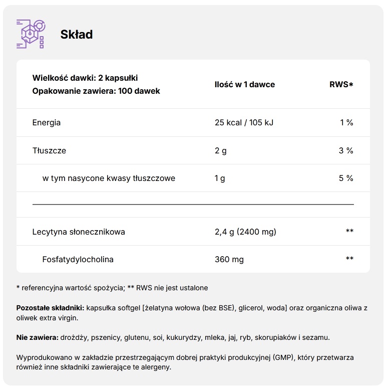 Sunflower Lecithin zawiera fosfatydylocholinę,