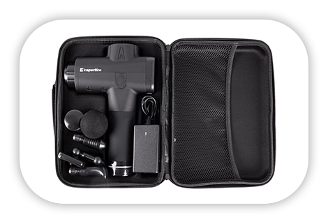 Okrągła głowica masująca jest odpowiednia dla wszystkich grup mięśni. Następnie jest rozwidlona końcówka do masażu kręgów kręgosłupa, płaska, do większych mięśni i wrażliwych obszarów, stożkowa - do wywierania nacisku na określone miejsce, rozwidlona w kształcie litery U do masażu kręgów kręgosłupa i końcówka w kształcie kciuka dla mniejszych mięśni. Kompaktowy pistolet do masażu inSPORTline Rondys pozwala cieszyć się masażem całego ciała w zaciszu własnego domu.