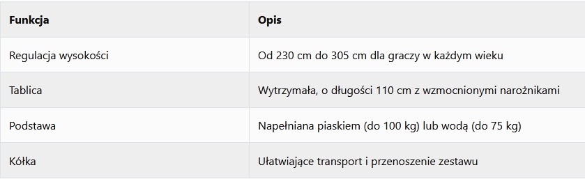 koszykówkę bez względu na warunki. Dzięki regulowanej wysokości,